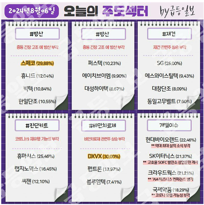 4. 스페코(29.88%) : 중동지역 지정학적 리스크 지속 등에 방위산업/전쟁 및 테러 테마 상승 속 상한가