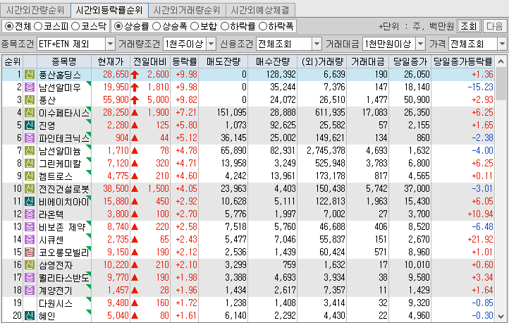 2. 시간외 일부 정치/인맥(홍준표) 테마 하락