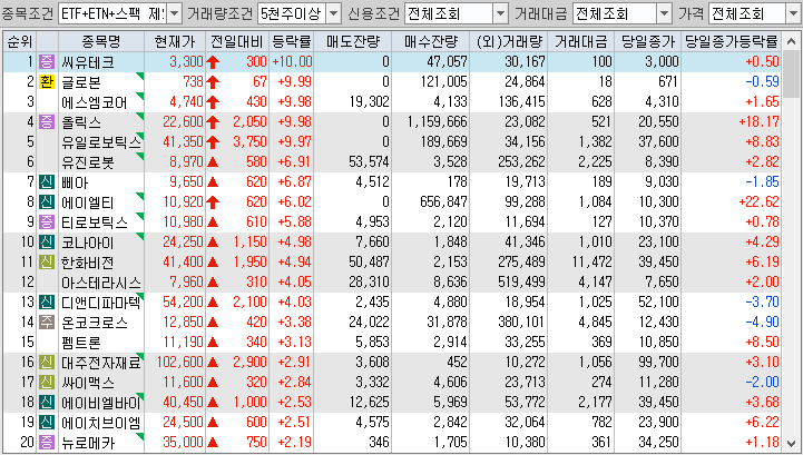 4. SK그룹, SKT 주축 AI(인공지능) 로봇 사업 본격화 소식 및 테슬라 휴머노이드 로봇 '옵티머스' 대량 생산 기대감 등에 시간외 일부 지능형로봇/인공지능(AI) 테마 상승