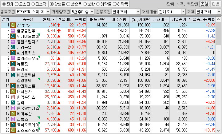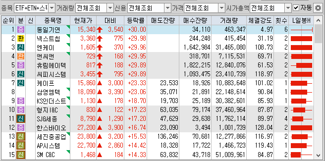 1. 동일기연 (30.00%) : 전자장비관련주, 시총600억대, 전자부품&의료기기사업, 47.04억원 규모 자사주 취득 결정, 개별 등락