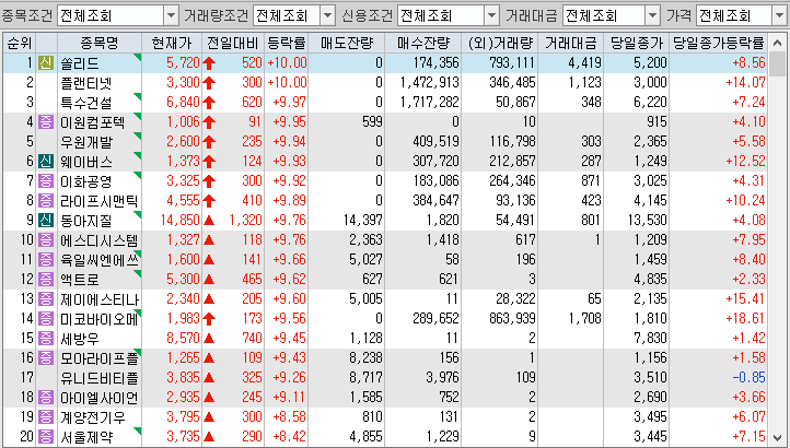 7. 장 마감 후 [투자주의]상한가잔량상위종목 공시. 시간외 일부 출산장려정책 테마 하락